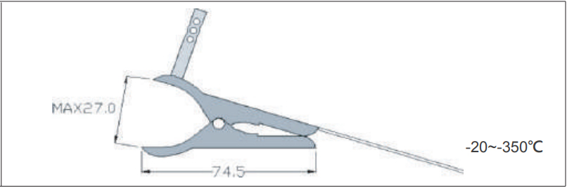 ใช้หนีบกับวัสดุุที่ต้องการวัด ตัวคลิปหนีบกับวัสดุอย่างดี และมีเซนเซอร์เป็นท่อสำหรับวัดอุณหภูมิของอากาศ
