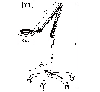 โคมไฟแว่นขยาย แบบฐานล้อเลื่อน พร้อมแขนปรับอิสระ
