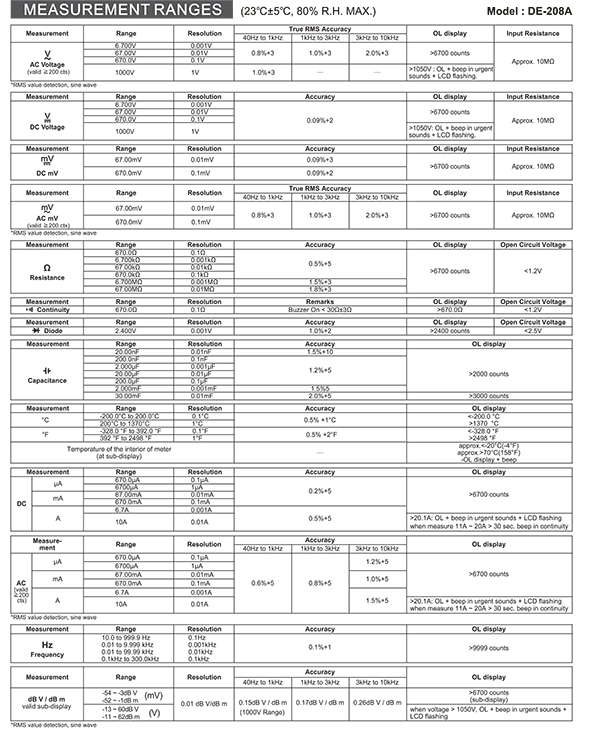 DE-208A ดิจิตอลมัลติมิเตอร์ True RMS