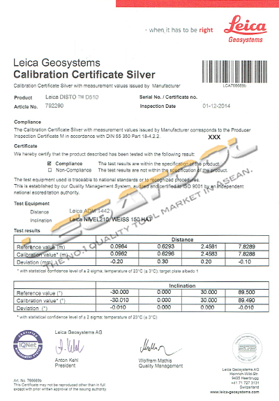 • Calibration Certificate