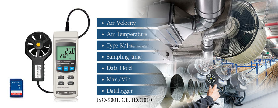 Lutron AM-14207SD เครื่องวัดและบันทึกความเร็วลม 3 in 1 | SD Card
