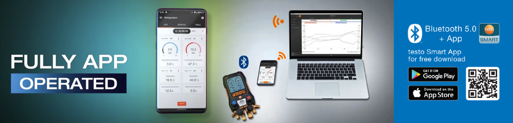 เกจวัดน้ำยาแอร์แบบดิจิตอลสำหรับงาน HVAC รองรับการใช้งานในการวัดค่าแรงดัน อุณหภูมิ และความดันสูญญากาศ มาพร้อมวาล์วควบคุม 4 ทิศทาง เพื่อเพิ่มประสิทธิภาพที่จำเป็นต่อการใช้งานด้านระบบวัดความดันและการทำความเย็น ควบคุมการทำงานผ่าน Bluetooth ร่วมกับ Testo Smart app ที่ใช้งานง่ายและทําให้การวัดรวดเร็วมากขึ้น ทั้งยังสามารถเลือกใช้งานร่วมกับโพรบวัดอุณหภูมิ ความชื้นและสูญญากาศได้ตามความต้องการ เพื่อตอบโจทย์การใช้งานอย่างครอบคลุม ตัวเครื่องได้มาตฐานกันป้องกันฝุ่นและน้ำที่ IP54