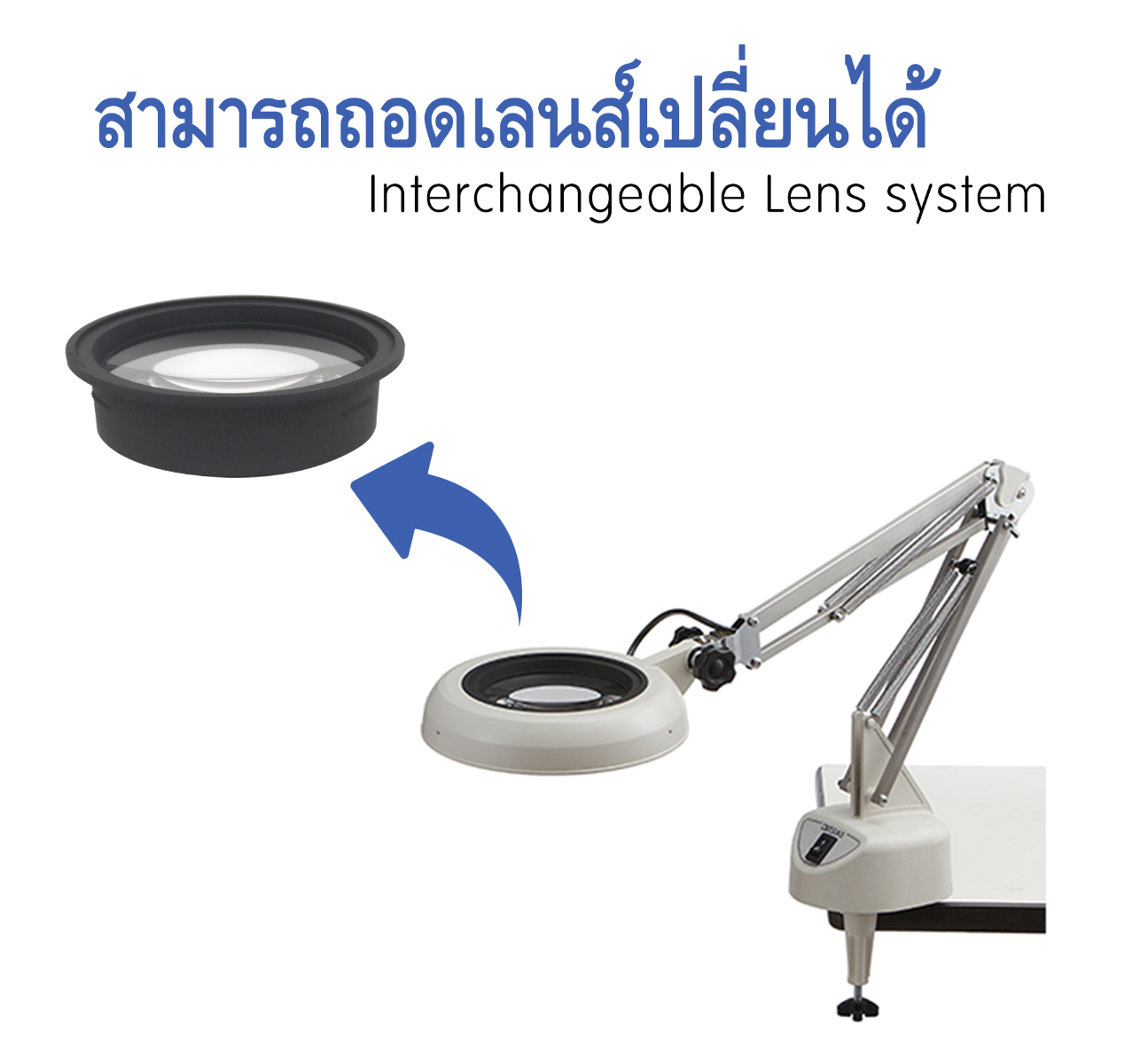 โคมไฟแว่นขยายแบบมีแขนจับหนีบโต๊ะ (Compact free arm and clamp type illuminated magnifier)